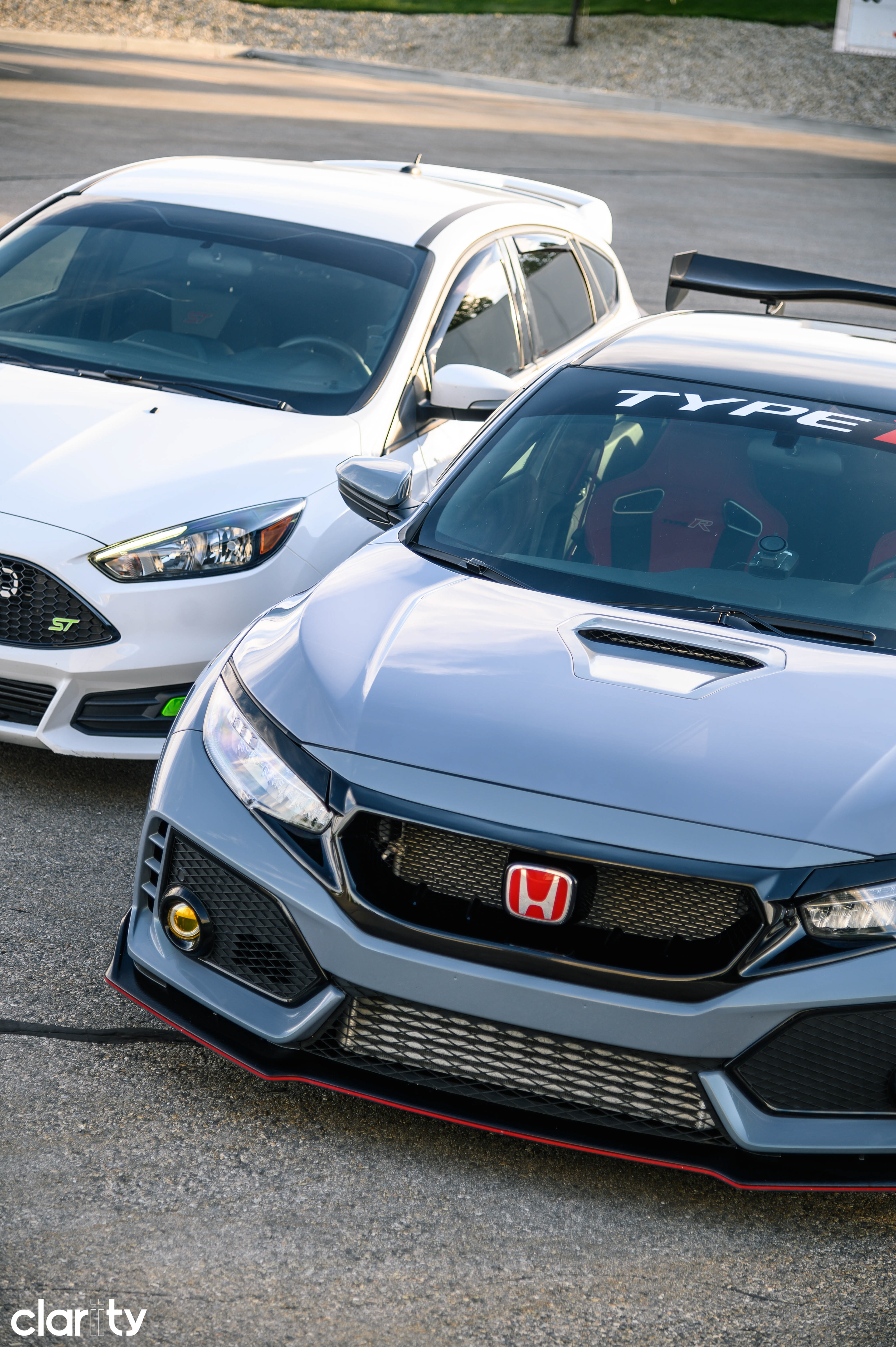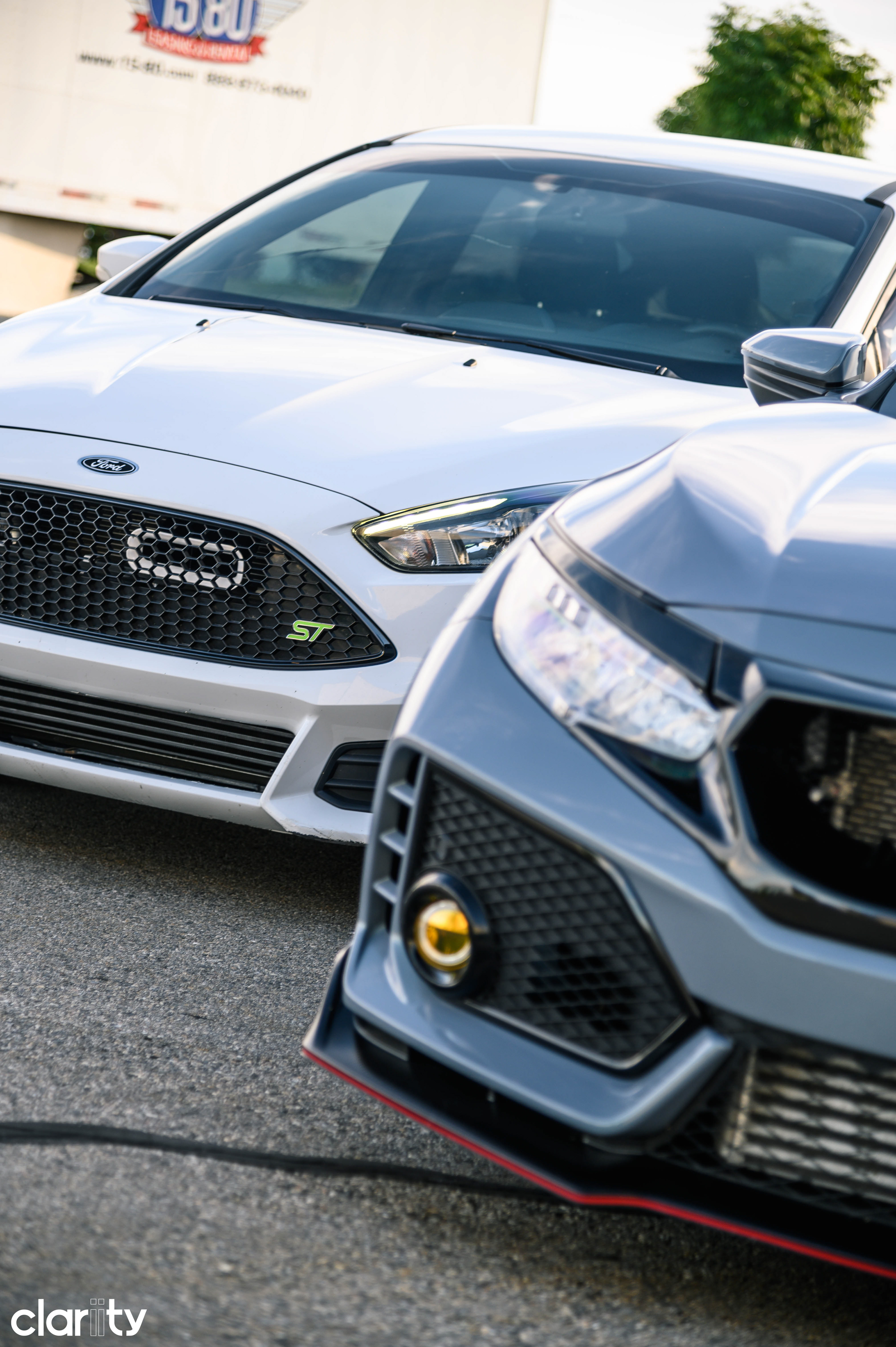 June 24, 2020 For Logan Baggs and Braden Pirami. Logan owns the white Ford Focus ST and Braden owns the blue Honda Civic Type R