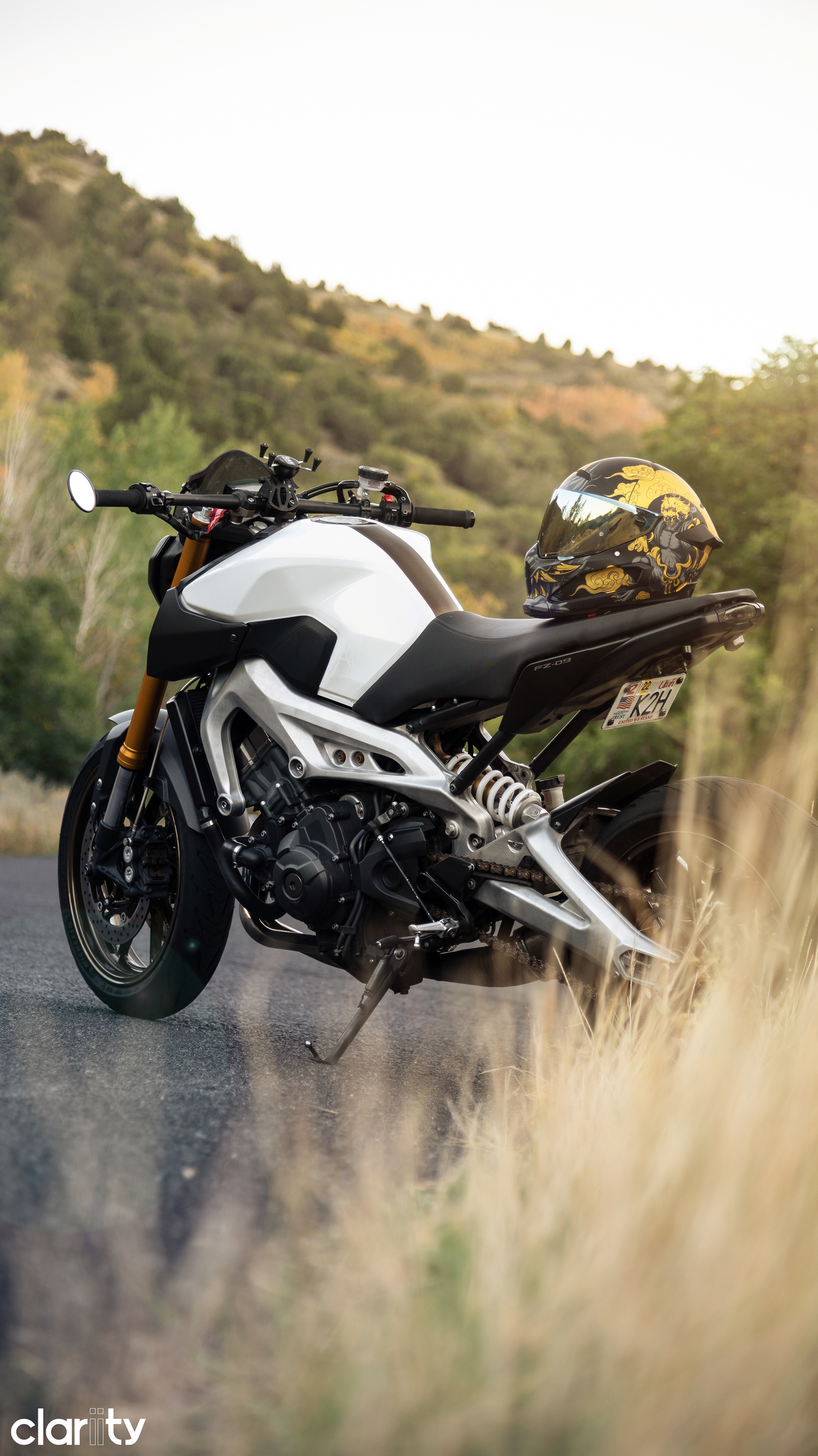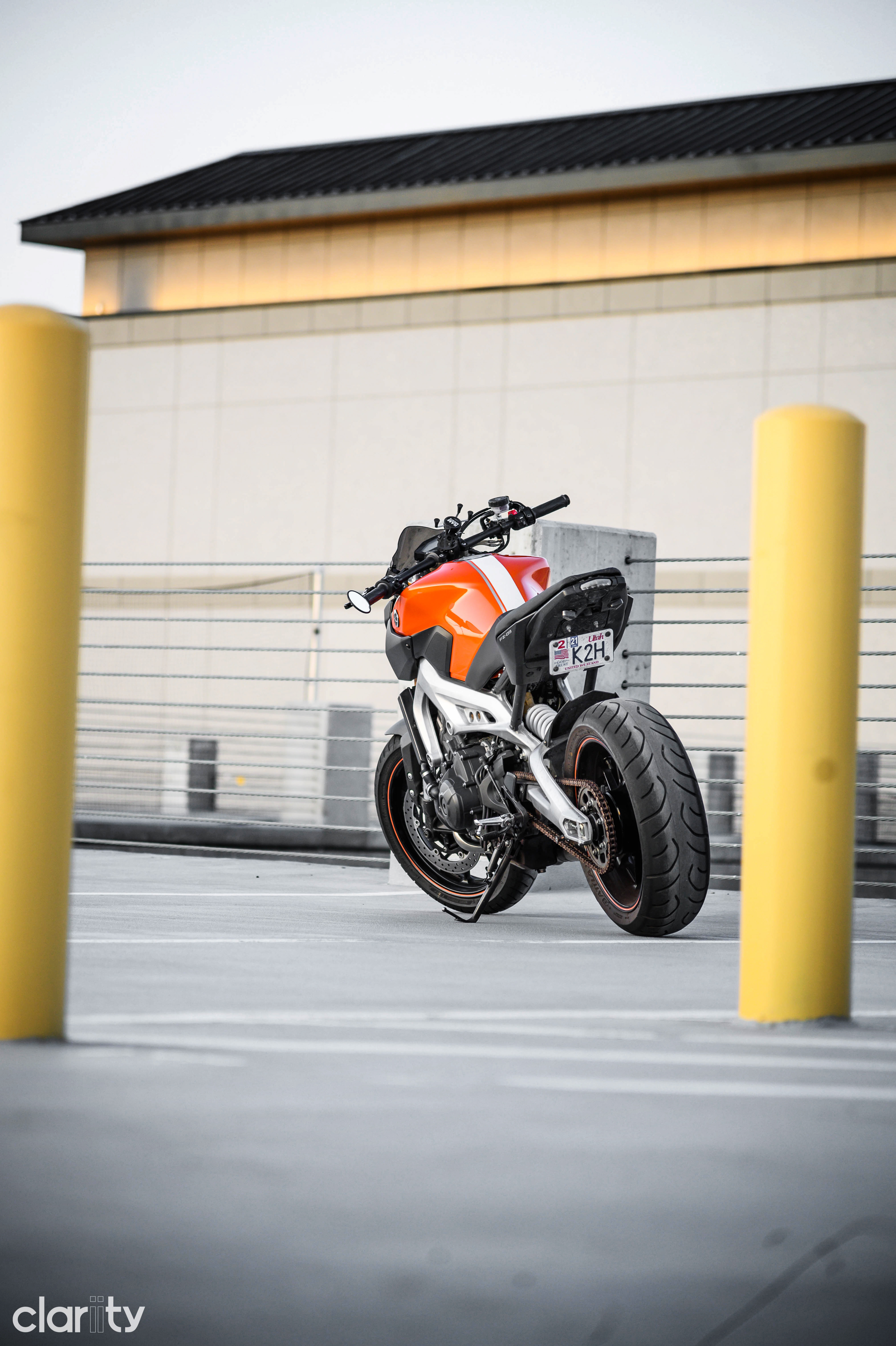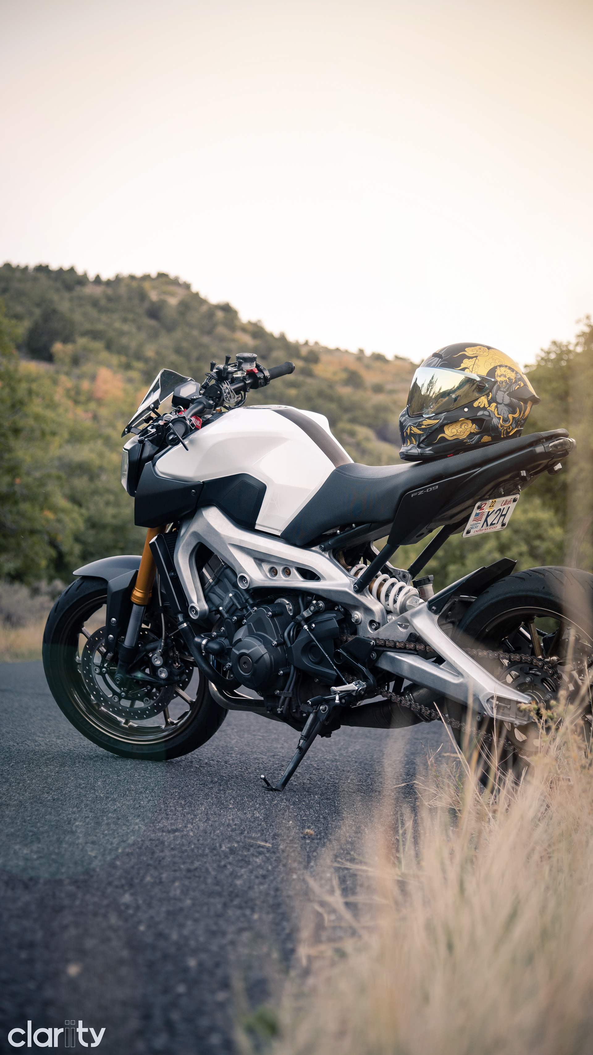 This set contains pictures of my 2014 Yamaha FZ-09 from 2020 and 2021. For context the orange tank was from Feb - June 2020 and the white tank was from June 2020 - Present, and the bronze wheels were after May 2021